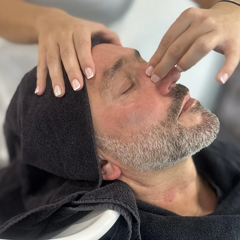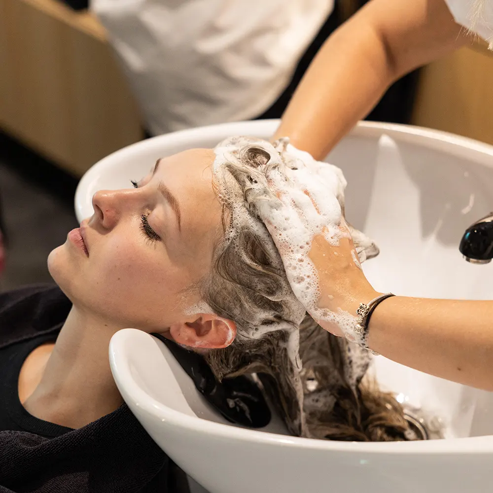 Umivanje las nežno preide v sprostitev, kjer se čas ustavi in stranka doživi nepozaben trenutek miru in sproščenosti.